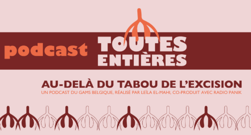 Le podcast « Toutes Entières », réalisé par Leïla El-Mahi et co-produit par le GAMS Belgique (Groupe pour l’Abolition des Mutilations sexuelles Féminines) et Radio Panik, vous fait découvrir près de 30 ans de lutte contre les MGF. À travers divers épisodes, l’association propose de mettre en valeur ses six axes de travail : prévention, protection, accompagnement, formation & concertation, plaidoyer & expertise et la coopération internationale.