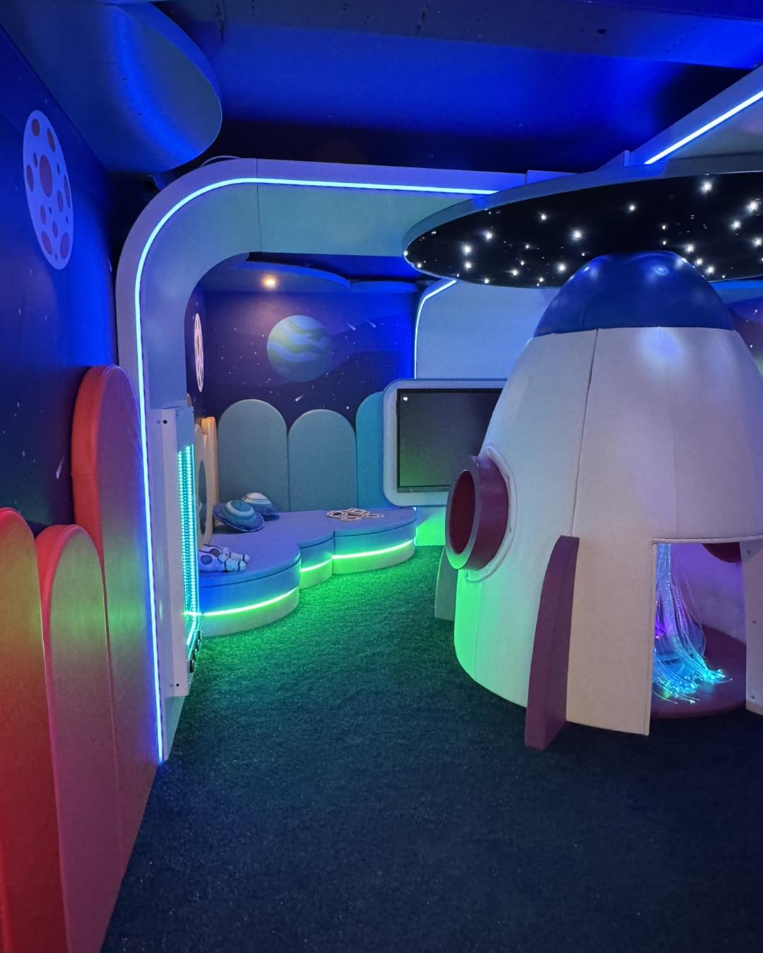 - Des jeux sensoriels et à hauteur : l’objectif recherché est l’apaisement avec également une zone fusée pour explorer et des jeux pour créer.