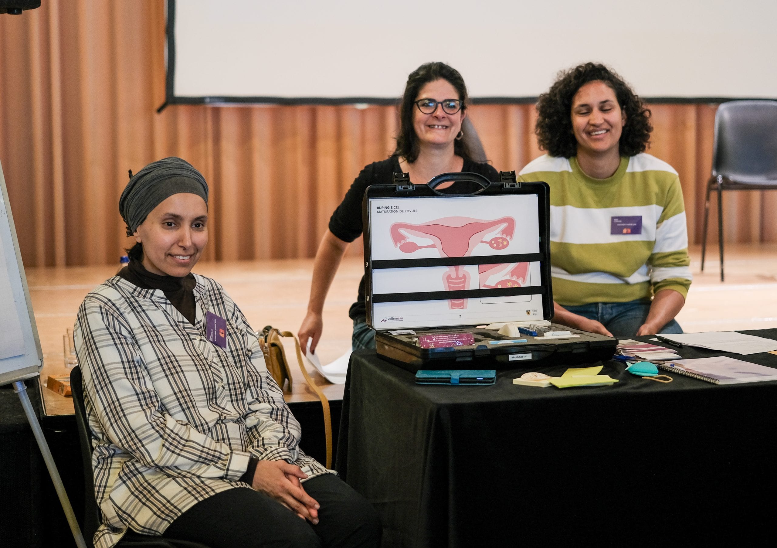 L’atelier 4 fut proposé sous forme de présentation de trois projets autour de la dimension culturelle dans l’approche des publics. Parmi les trois exposés, il y avait notamment Hanan Ben Adbeslam – travaillant pour « Volle Maan » et bien connue de l’équipe Born in Brussels – qui présentait sa « boîte d’information pour les contraceptifs culturellement sensibles ». Ce kit, développé depuis 2007 et mis à jour depuis lors, est proposé dans les différentes communes bruxelloises pour sensibiliser les professionnel.le.s de la santé. Durant cet après-midi, les deux autres exposés, tout aussi intéressants, de Culture & Santé et de la Fédération Laïque des Centres de Planning familiaux, permettaient de se rendre compte d’une réalité de terrain : il existe bel et bien un manque d’informations sur la contraception pour les femmes issues de l’immigration à Bruxelles.