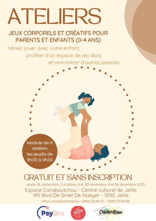 « Venez jouer avec votre enfant, faire de nouvelles expériences, parler, échanger et expérimenter un moment de détente et de plaisir ensemble. Comment se passe une séance de jeux ? Lors du moment d’accueil, chaque duo parent – bébé/enfant est invité à se présenter. Le parent accompagne ensuite son enfant dans les jeux qu’iel choisit et/ou que nous proposons durant la séance de psychomotricité et le temps de symbolisation créative. Un moment plus informel d’échange autour d’un thé/café sera ensuite proposé pour clôturer. »