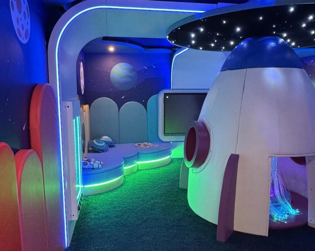 - sensorische en creatieve spellen: rustgevende activiteiten, een raketzone om te ontdekken en creatieve spelmogelijkheden;